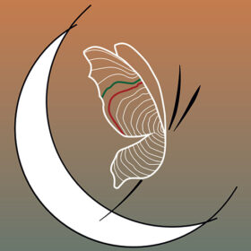 Mon atelier dégage des parfums de résine et tanin et attire des papillons. « Le paon du jour » est mon binôme permanent. Il arrive et repart au fil des jours. Cet insecte m’accompagne dans mon espace de travail et contribue à façonner mon monde imaginaire. Attiré par la lumière, ayant un aspect unique du aux veinages de ses ailes, il résume parfaitement l’idée de personnaliser l’éclairage. Le soleil, lui, est lié à la lune : deux sources lumineuses, compagnon éternel des papillons. Quand le soleil disparaît, il charge la lune de nous refléter sa lumière.