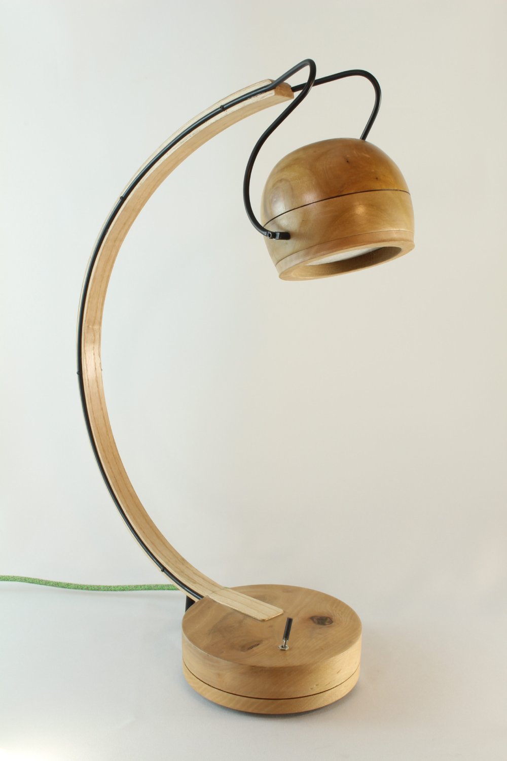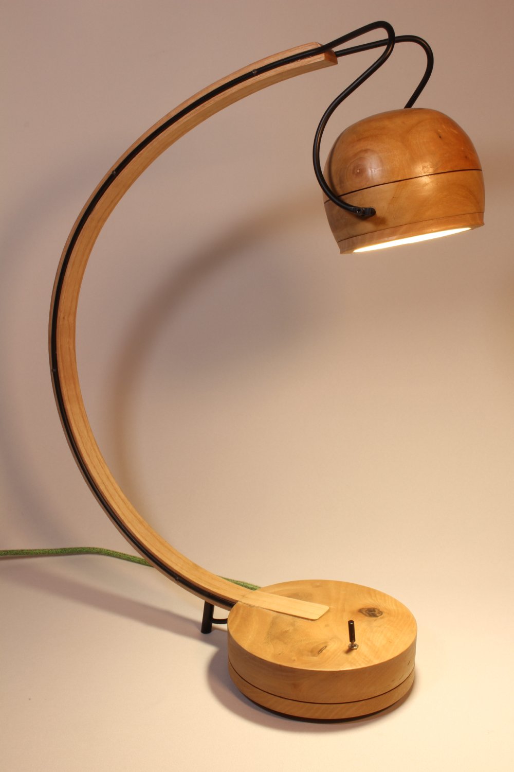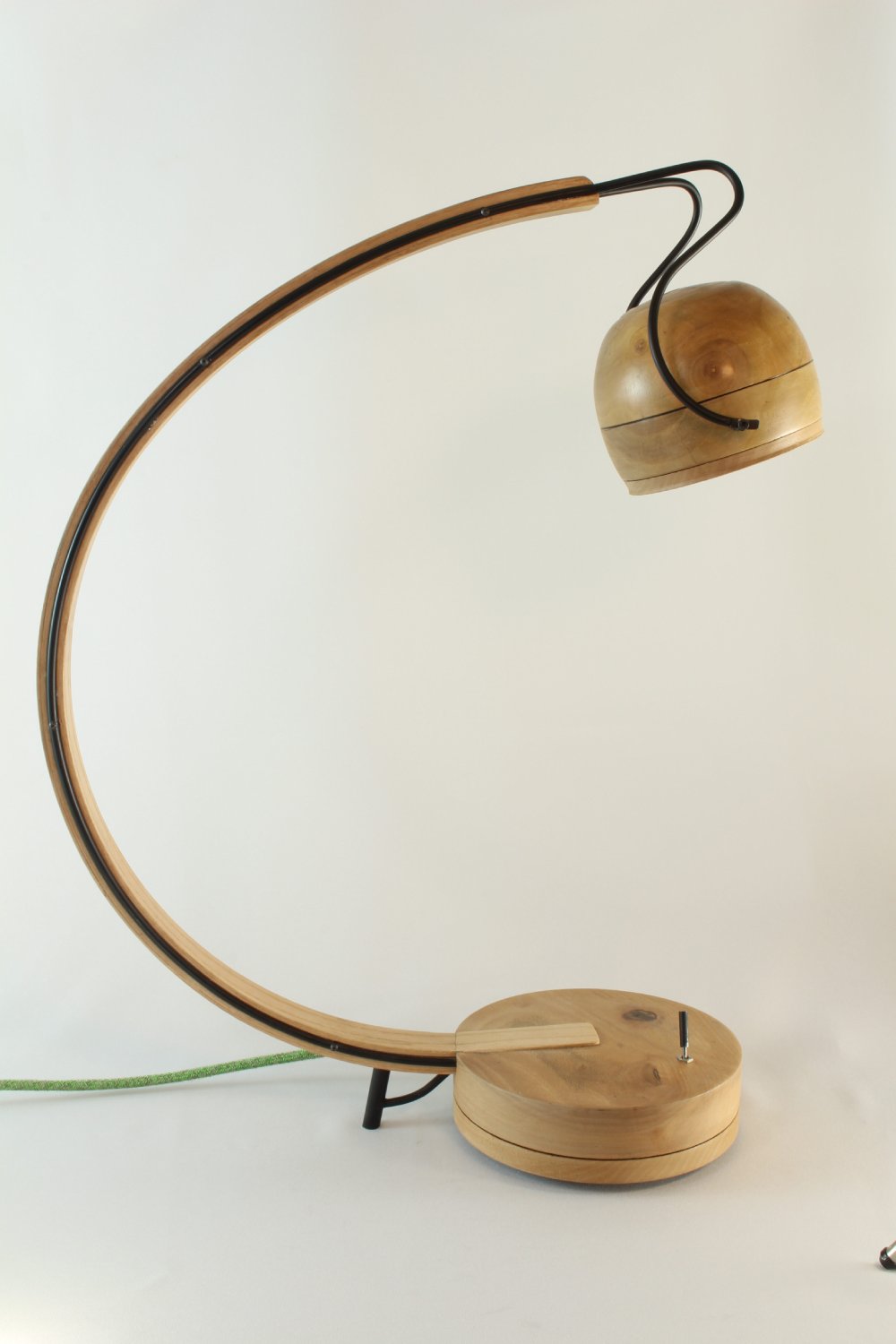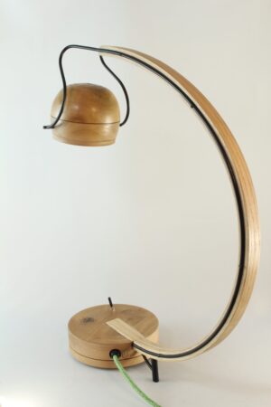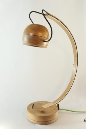 Tournée, façonnée et assemblée à la main, cette lampe révèle la chaleur du bois et la force du métal.